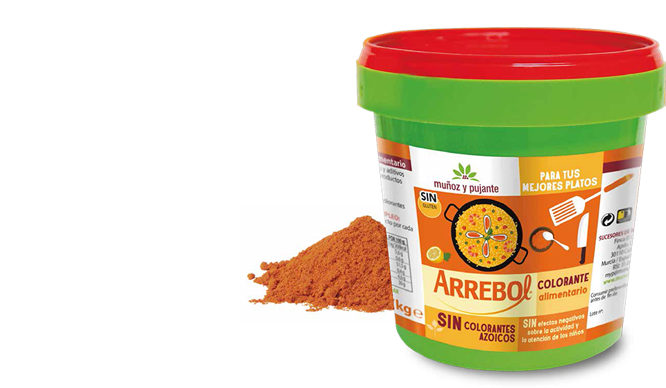Para hacer tu cocina mucho más apetitosa, sin renunciar al color y sabor. Presentamos ARREBOL, un producto innovador, que tranquiliza a madres y padres, pues puede utilizarse para la comida infantil. Es un colorante alimentario, elaborado a partir de extractos vegetales naturales, y libre de colorantes artificiales, como por ejemplo los azoicos, que "pueden tener efectos negativos sobre la actividad y la atención de los niños".